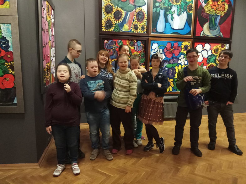 Всего в галерее сегодня девять семей с ребятами, все - старшего возраста. Светлана Салова, специалист по социальному сопровождению семей «Даунсайд Ап» потихоньку рассказывает, что хотели и просились многие. Но пока решили проверить, как вообще пойдет.