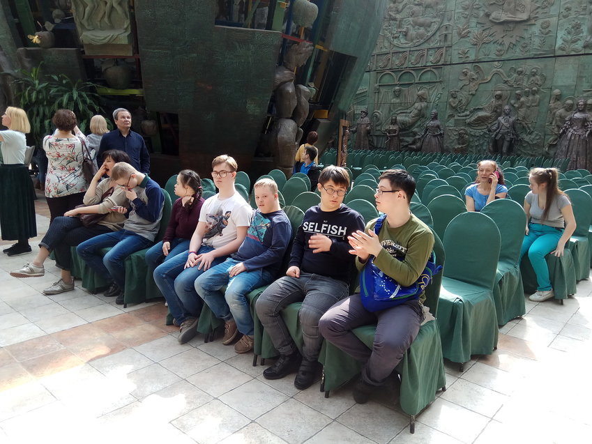 Галерея Зураба Церетели, возможно, самое сочное, самое жизнеутверждающее место на культурной карте Москвы! Ты делаешь шаг, а дальше тебя уже кружит, затягивает, обнимает и затанцовывает! Кругом много красного, зелёного, фиолетового! Буйство цвета, сила формы, творческая феерия! Ошарашенные ребята сначала просто смотрят, оглядываются и восхищённо переговариваются! Через полчаса всё смелее и смелее начинают фотографироваться на фоне живописных полотен! Такого Церетели ни мы, ни они не ожидали увидеть! Но именно таким он нам особенно нравится!