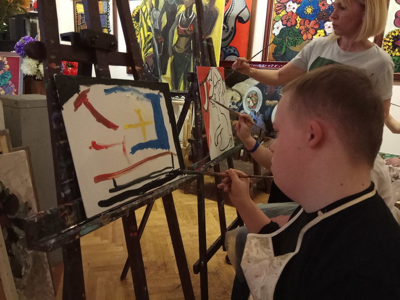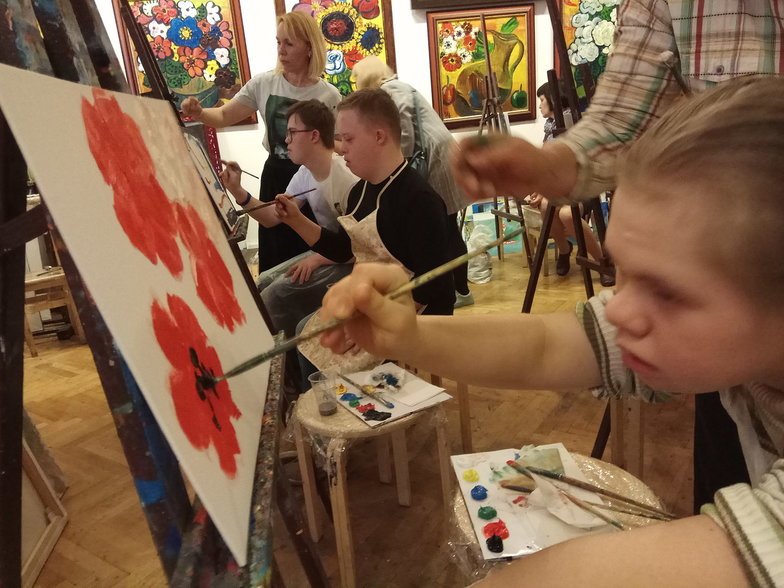 Галина Семёнова, мама Алёши: «Дети с синдромом Дауна очень эмоциональны. И все события, которые будят наши эмоции, они, конечно, много дают. Наши дети так познают мир - через эмоции. Они, может, сами и высказать не могут то, что увидели сегодня. Но в них сегодня вложено новое... Во всяком случае, мы ещё никогда не рисовали маслом!»