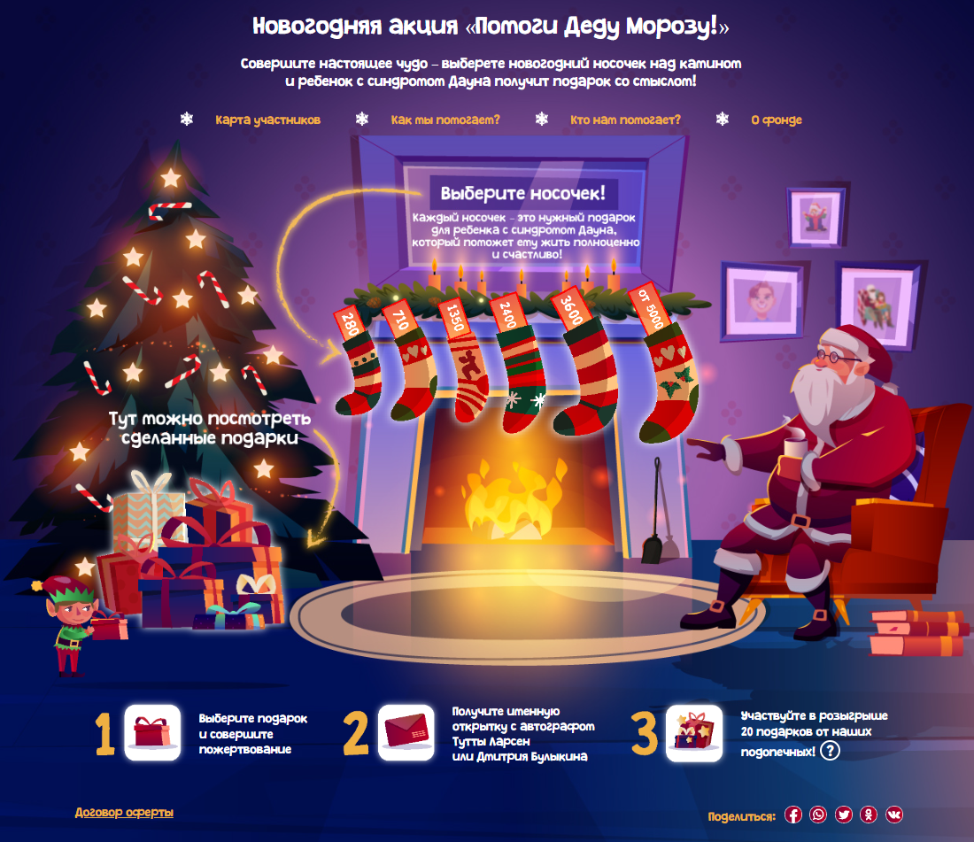 с 1 декабря 2023 года по 31 января 2024 года. На нашем сайте стартует ежегодная благотворительная онлайн-акция «Новогодний подарок» в поддержку людей с синдромом Дауна.