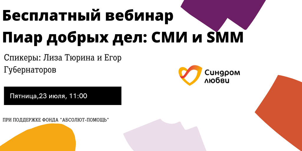 Как пиарить добрые дела? Однозначно при помощи СМИ и грамотного ведения социальных сетей. Если об этом не написали газеты и не вышел пост на ваших страницах, события не было. Какие релизы СМИ точно опубликуют, а какие отправят в «корзину» и о нюансах ведения соцсетей для НКО, расскажем на нашем бесплатном вебинаре.